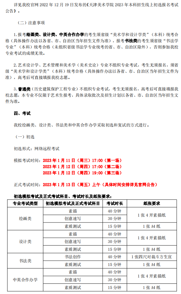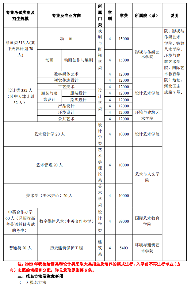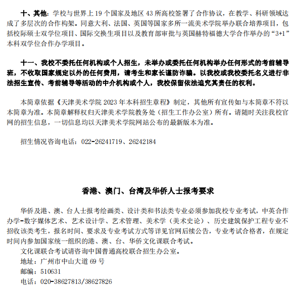 天津美术学院2023年本科招生简章