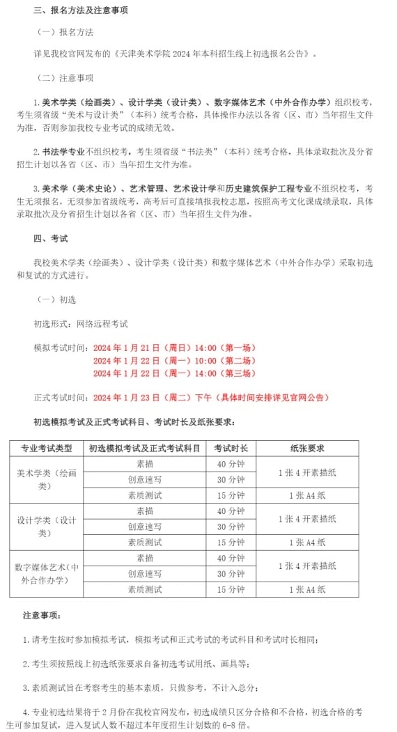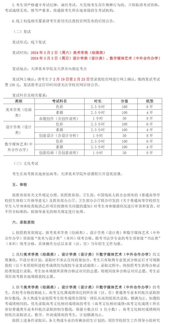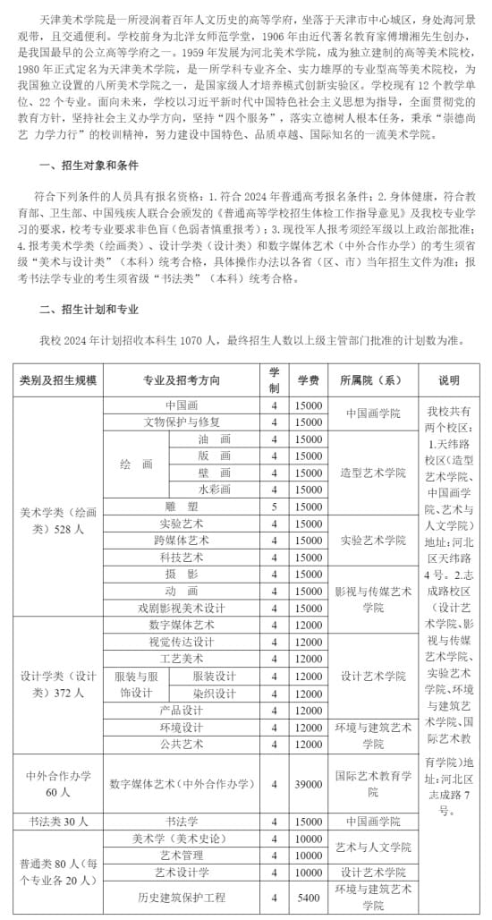 天津美术学院2024年本科招生简章